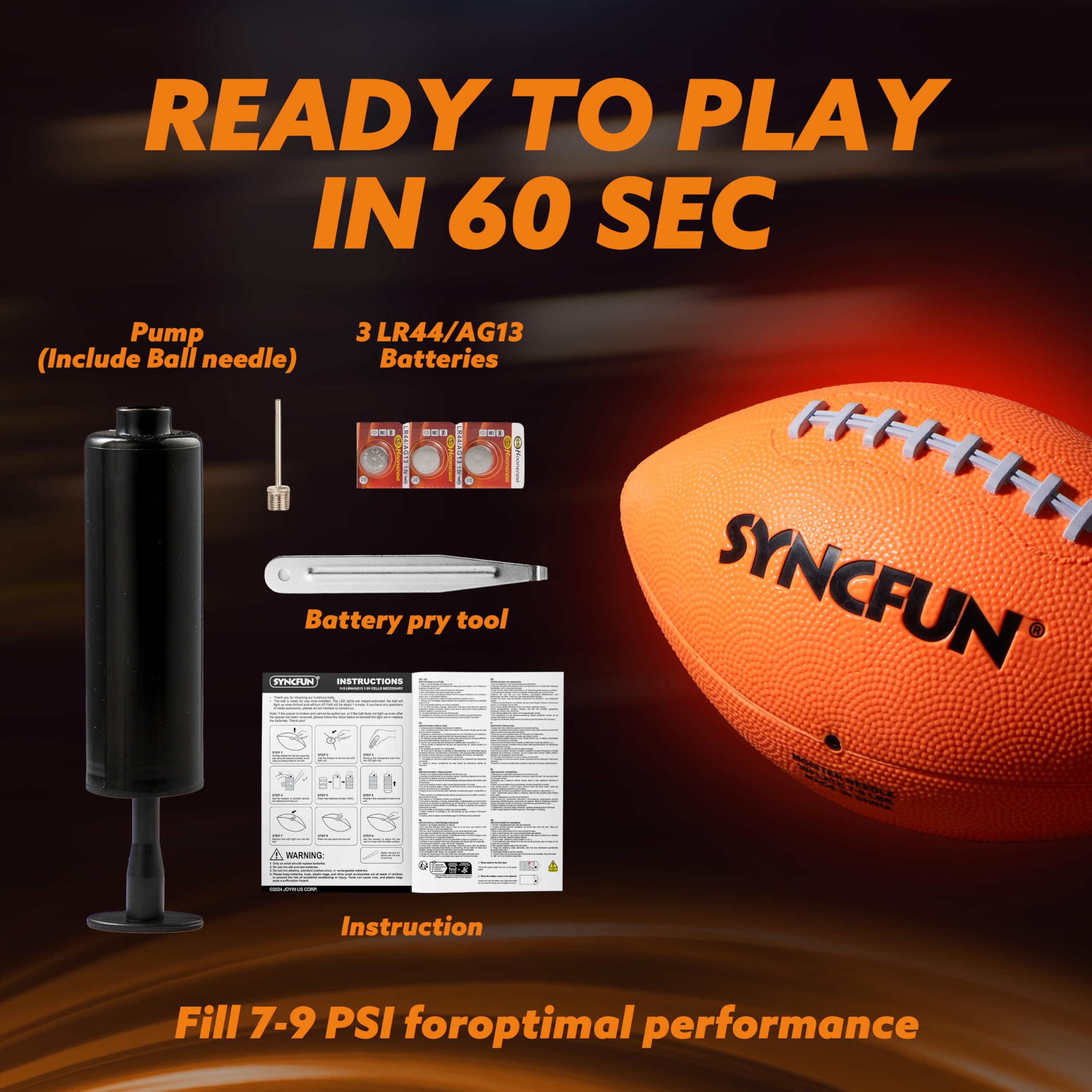 - Night Glow Feature: Experience the Syncfun football light up with every bounce, bringing your game to life with vibrant LED lights that automatically turn off after play. Elevate your game even during the darkest nights - the new way to play after sunset. The Syncfun football is your ideal choice, offering endless entertainment and allowing you to enjoy football fun anytime, anywhere.