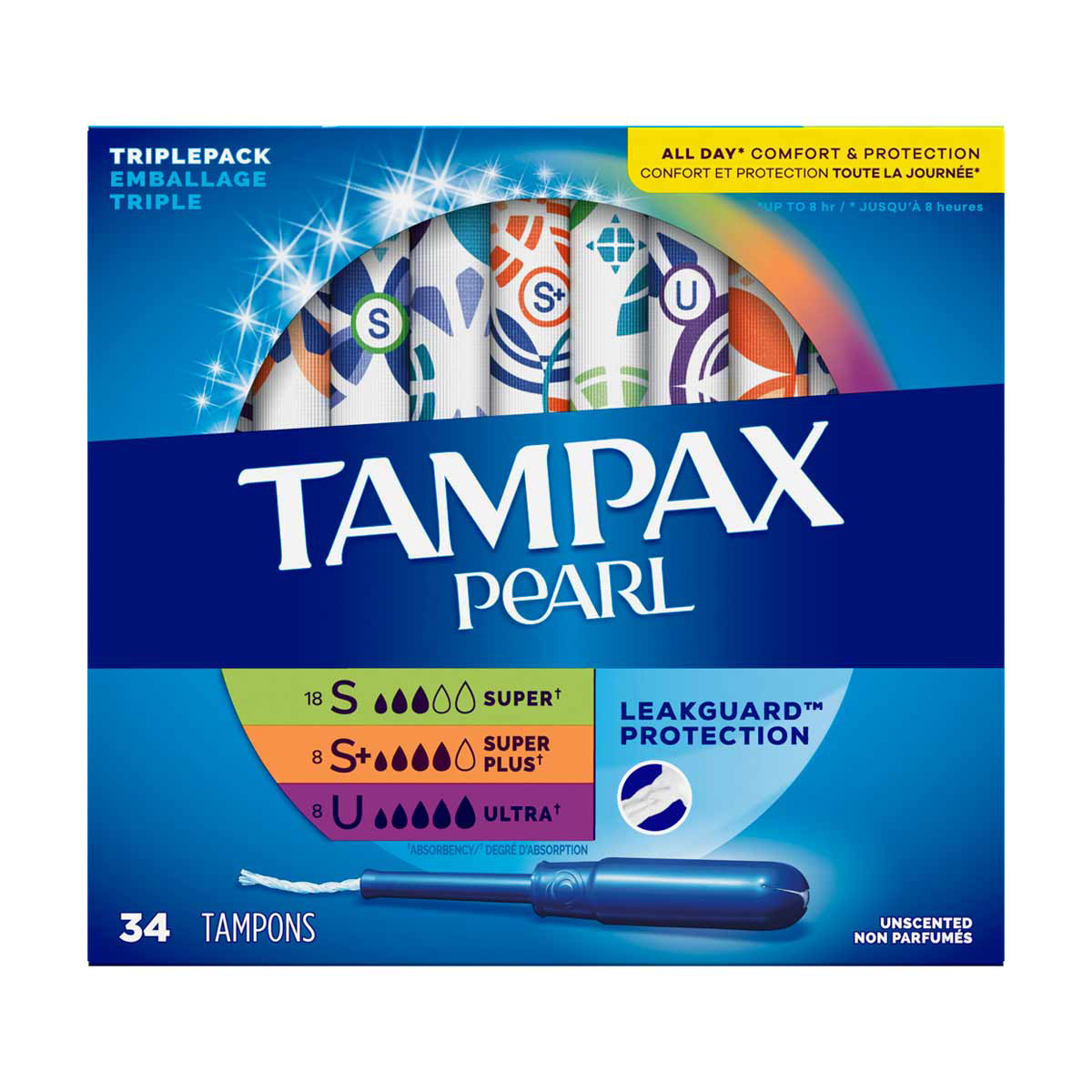 Tampax Pearl Tampons Trio Multipack, Super/Super Plus/Ultra Absorbency, 34 ct