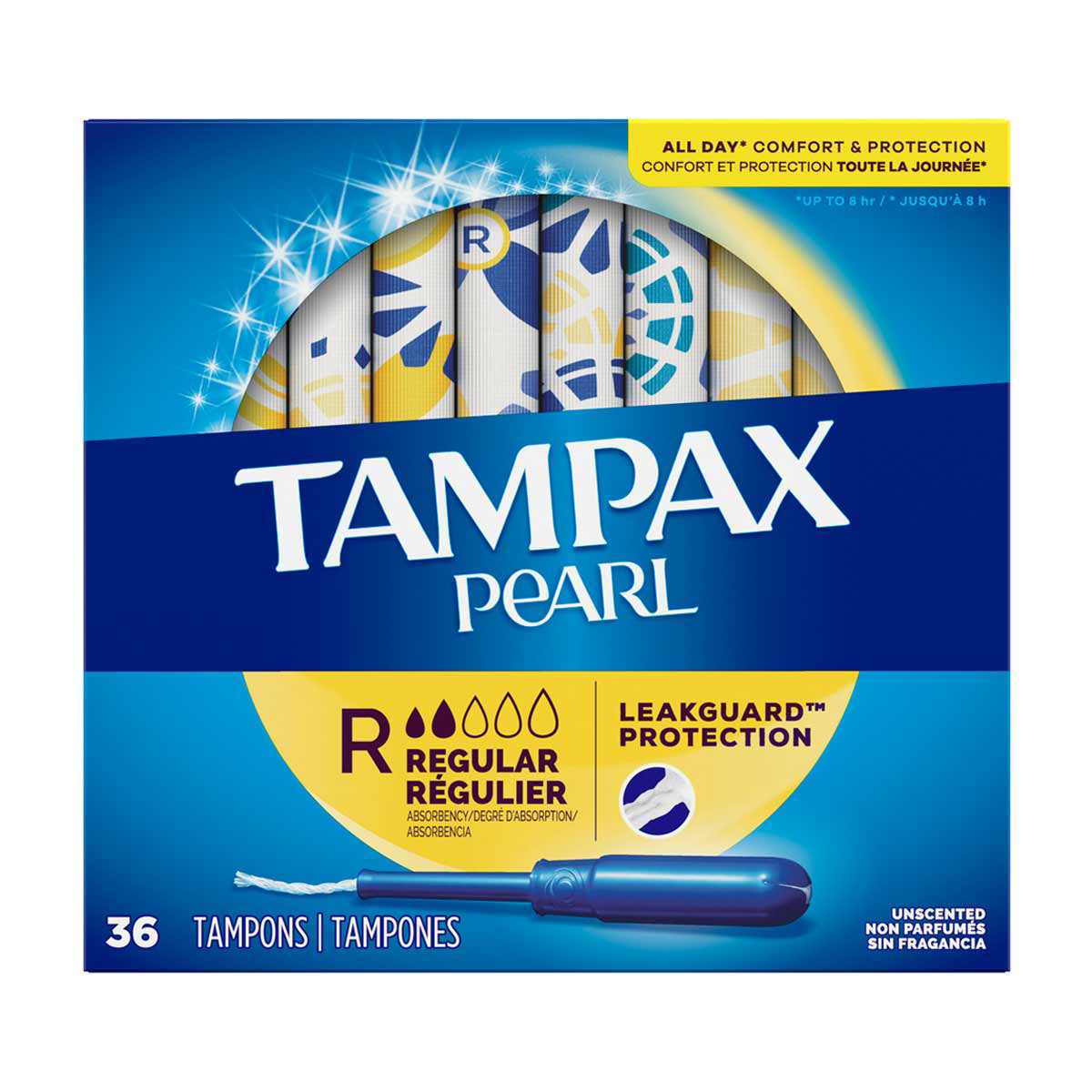 • Tampax Pearl Tampons, with LeakGuard Braid, Regular Absorbency, Unscented, 36 Count