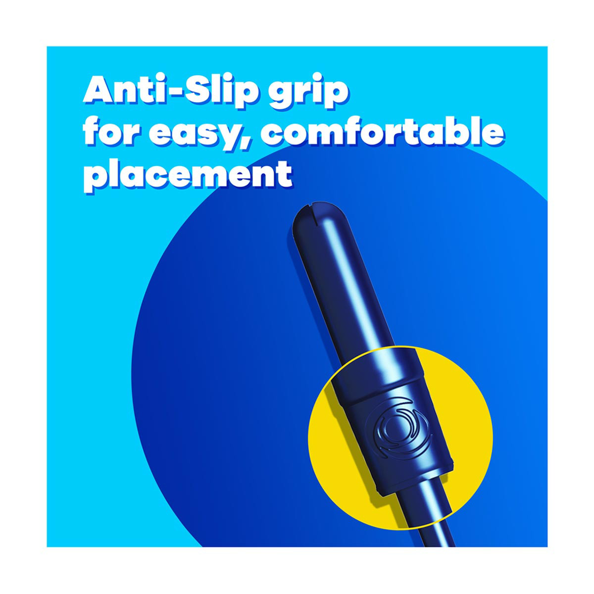 • ANTI-SLIP GRIP on applicator makes the tampons easy to insert