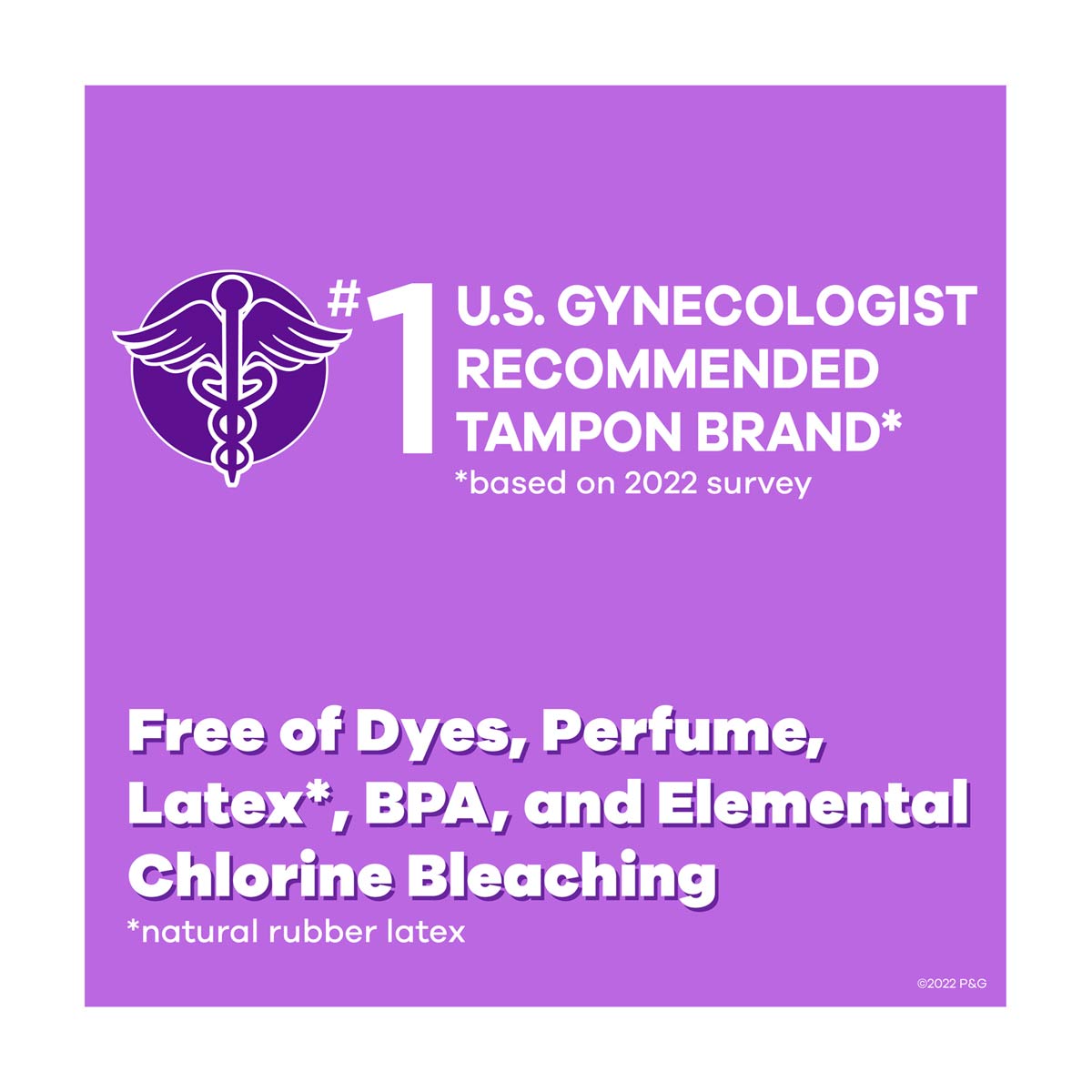 • #1 U.S. Gynecologist recommended tampon brand* *based on 2022 survey