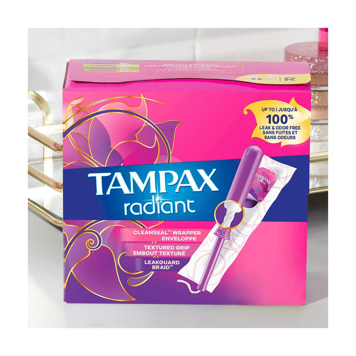 • Tampax Radiant tampons provide up to 100% leak and odor-free protection