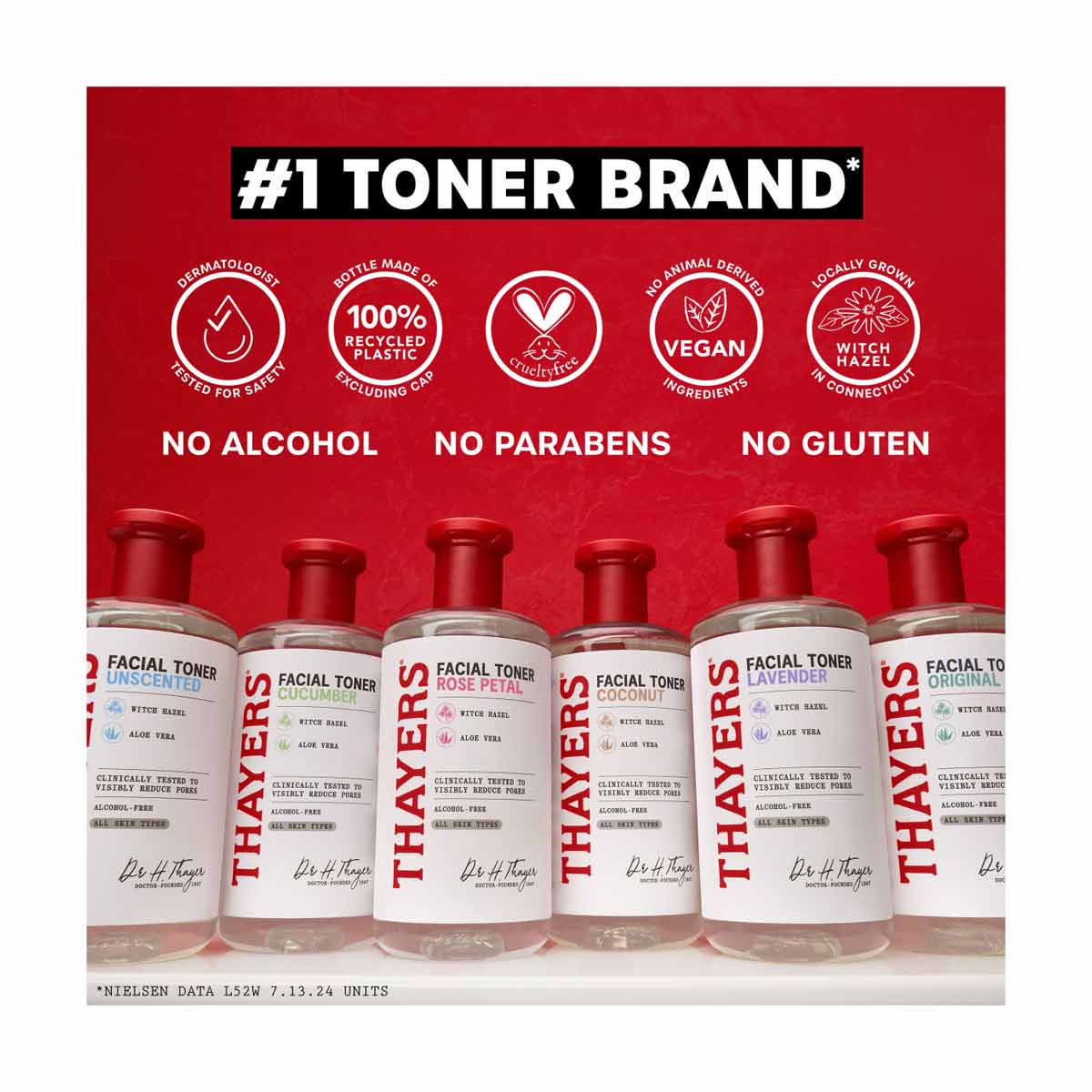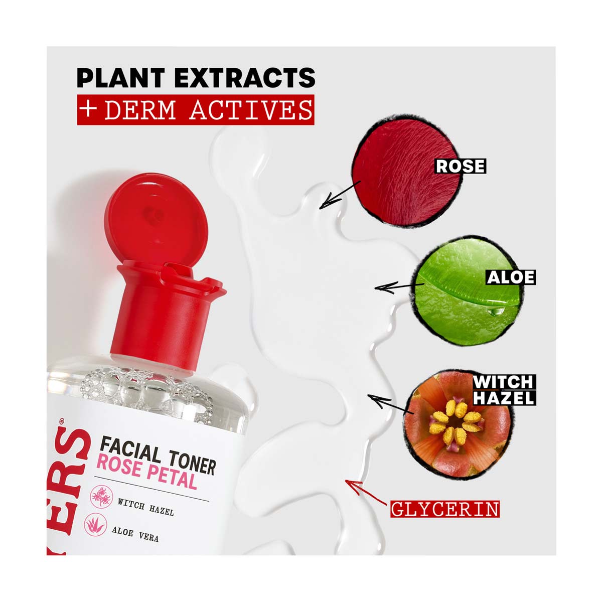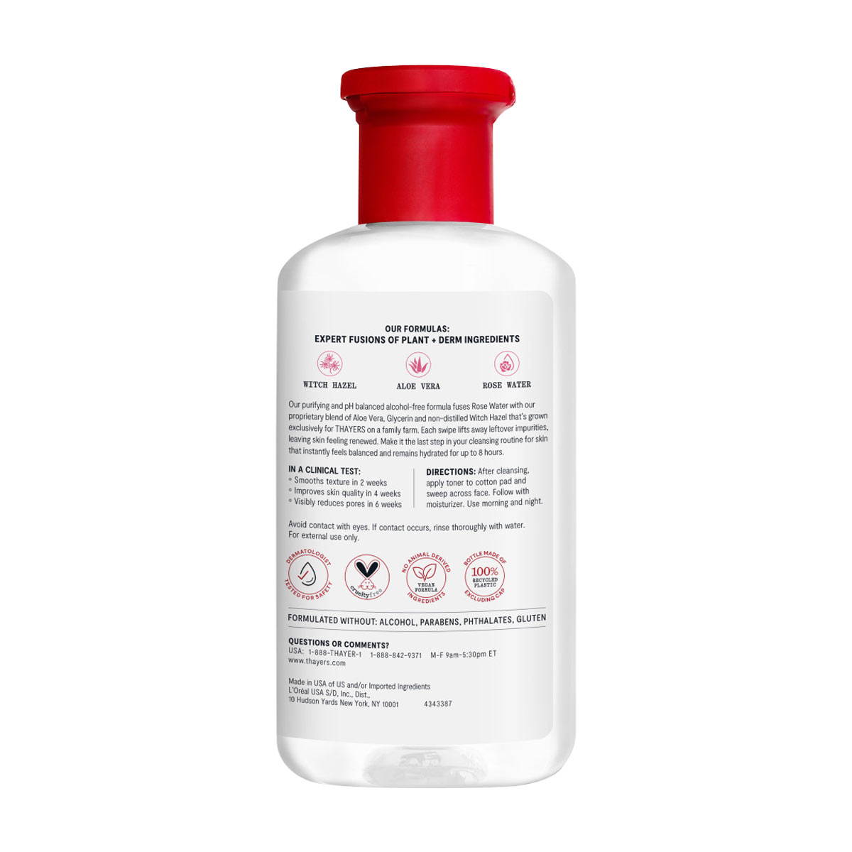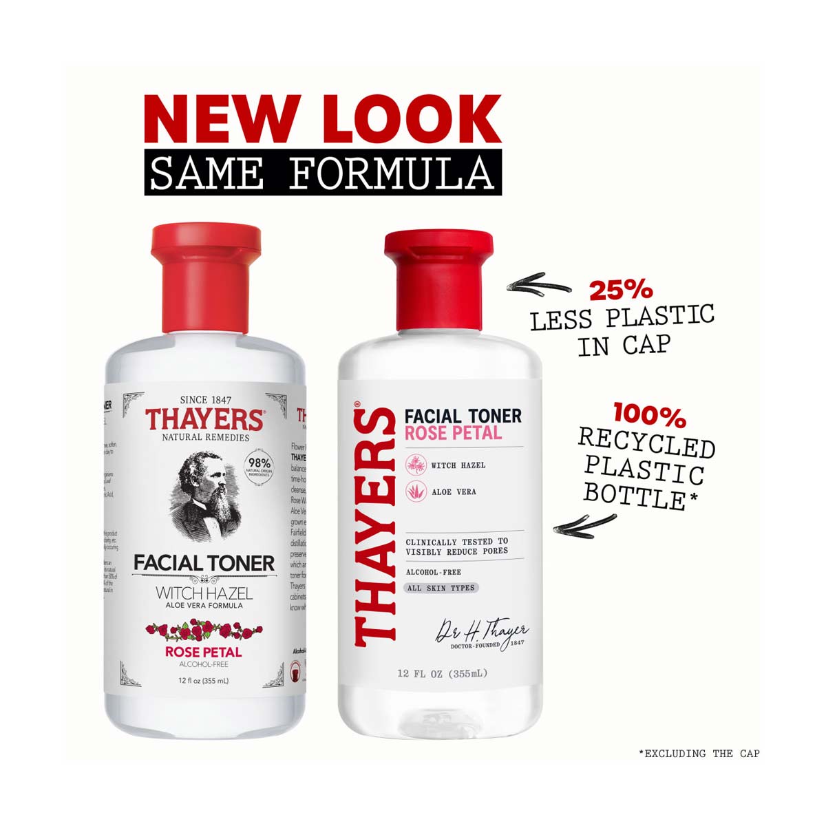 • Thayers Alcohol-Free Rose Petal Witch Hazel Toner visibly reduces pores, hydrates skin, and smooths texture