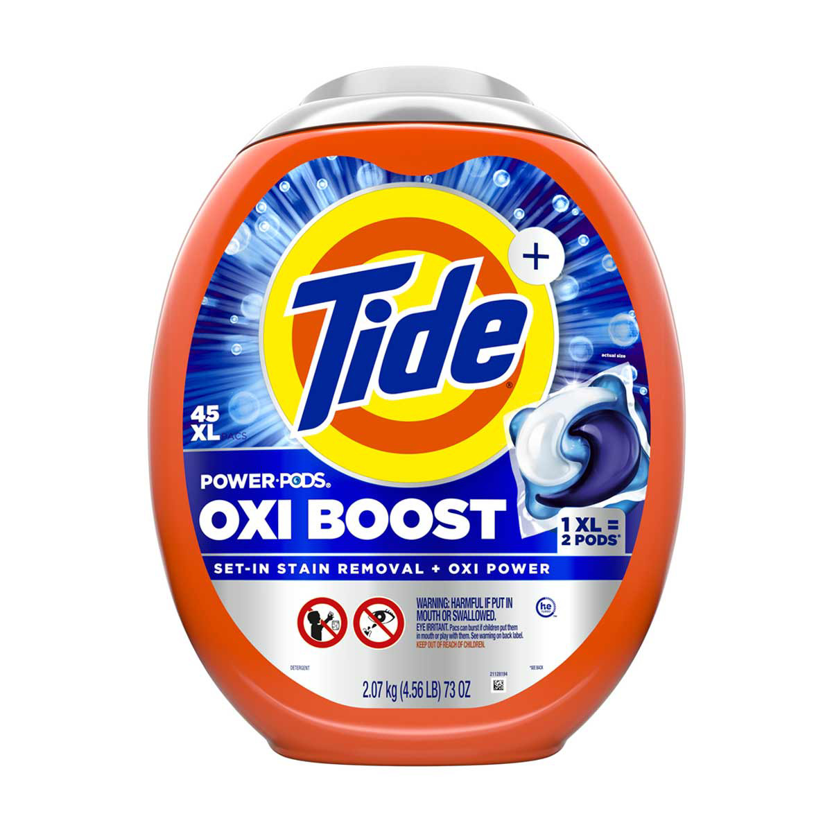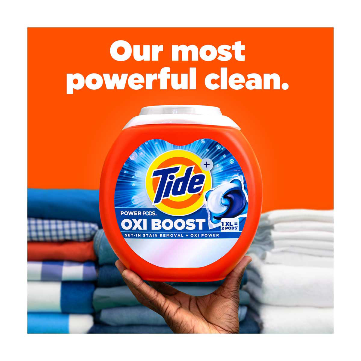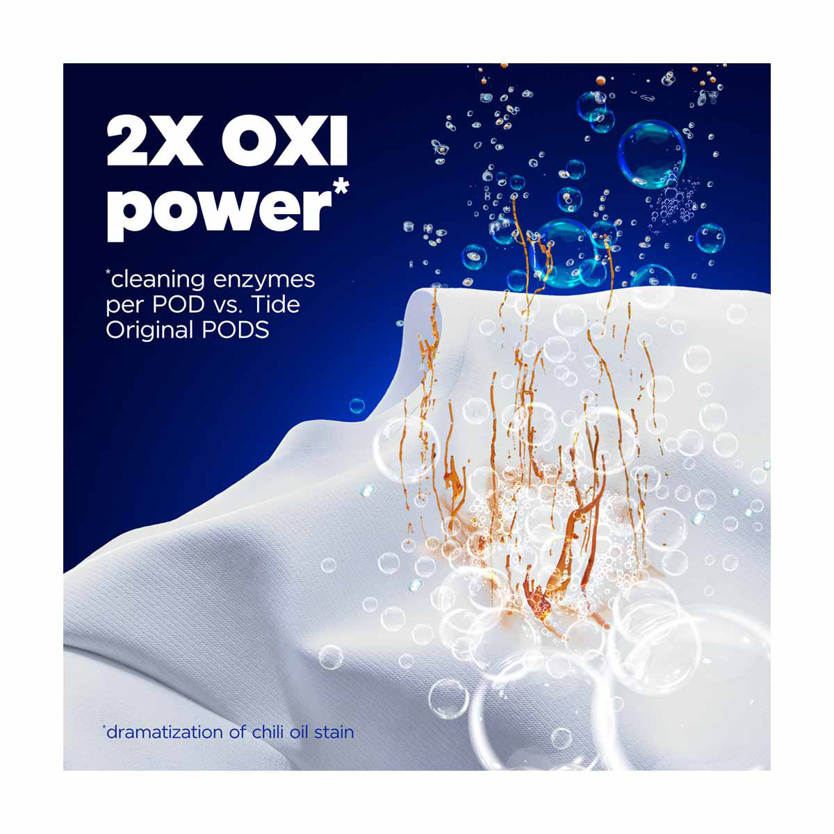 - POD,2X OXI POWER* - when the stains get tough, Tide Oxi Boost Power PODS gets going with the toughest laundry detergent pods from Tide*cleaning enzymes per POD vs. Tide Original Pods