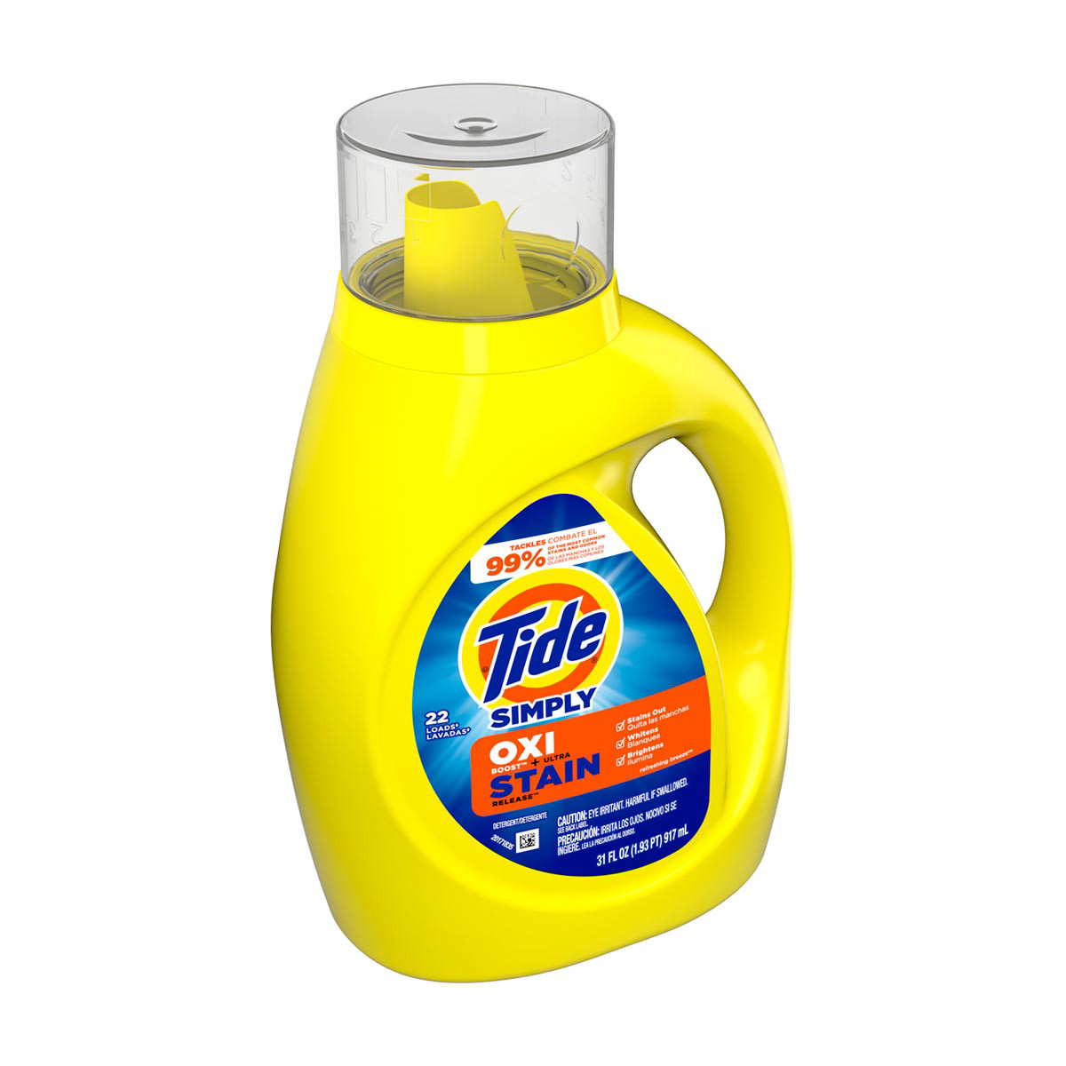- Tackles 99% of common stains and odors with oxi clean powered Tide Simply Oxi Boost laundry detergent
