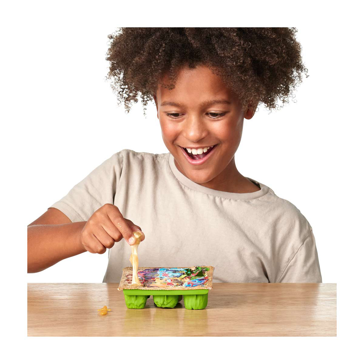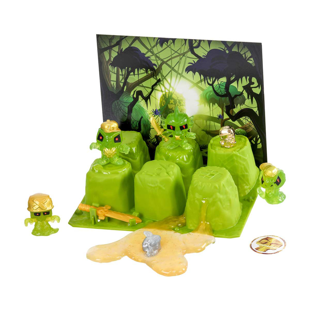 - Kids will rummage through a location, slice through the treasure map and reveal 4 micro sized figures.