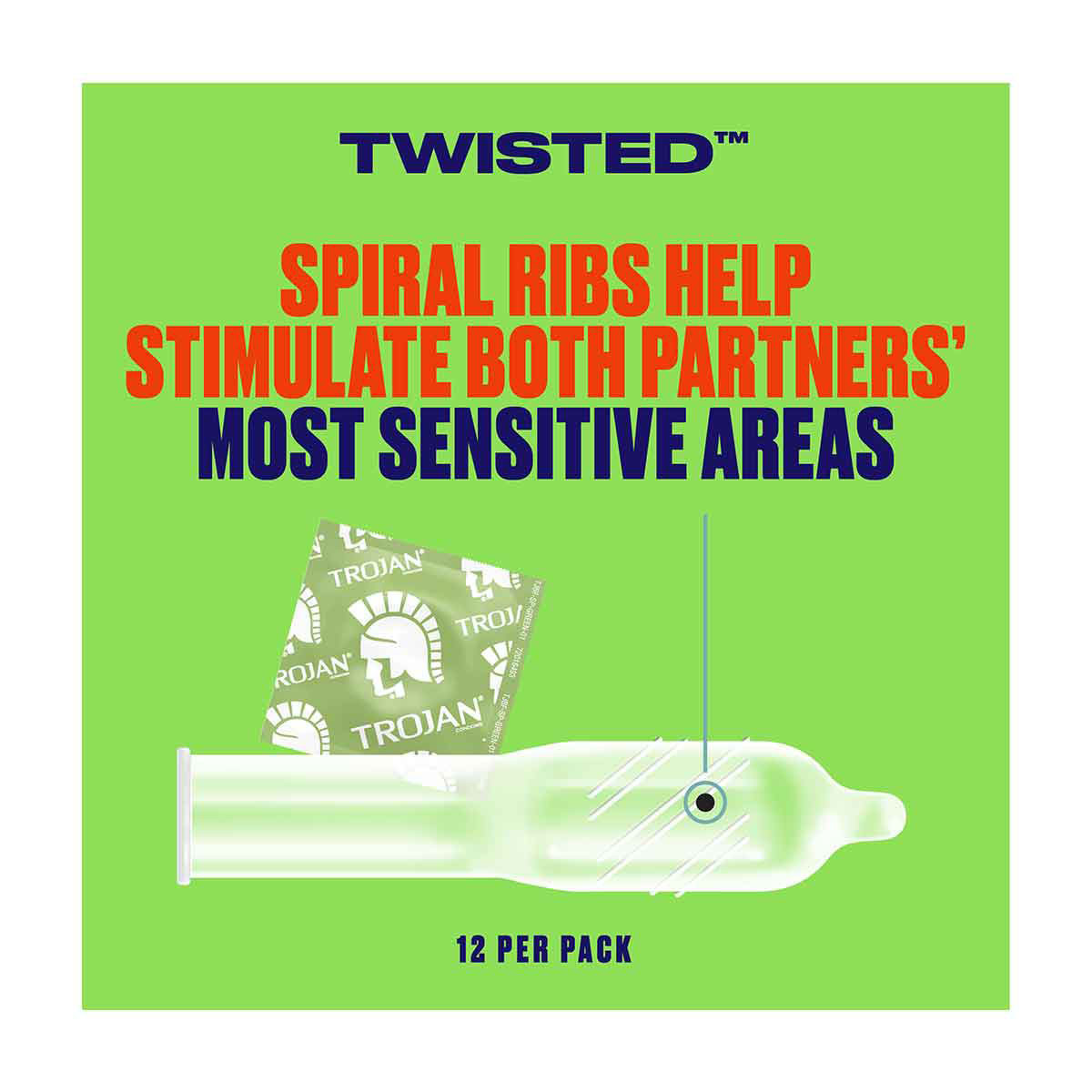 - Variety Condoms: Each box of condoms contains 4 Trojan Twisted Condoms, 4 Trojan Her Pleasure Sensations Condoms, 2 Trojan Intense Condoms, and 2 Trojan Warming Condoms so you can try a different way to mix up your pleasure every time you play