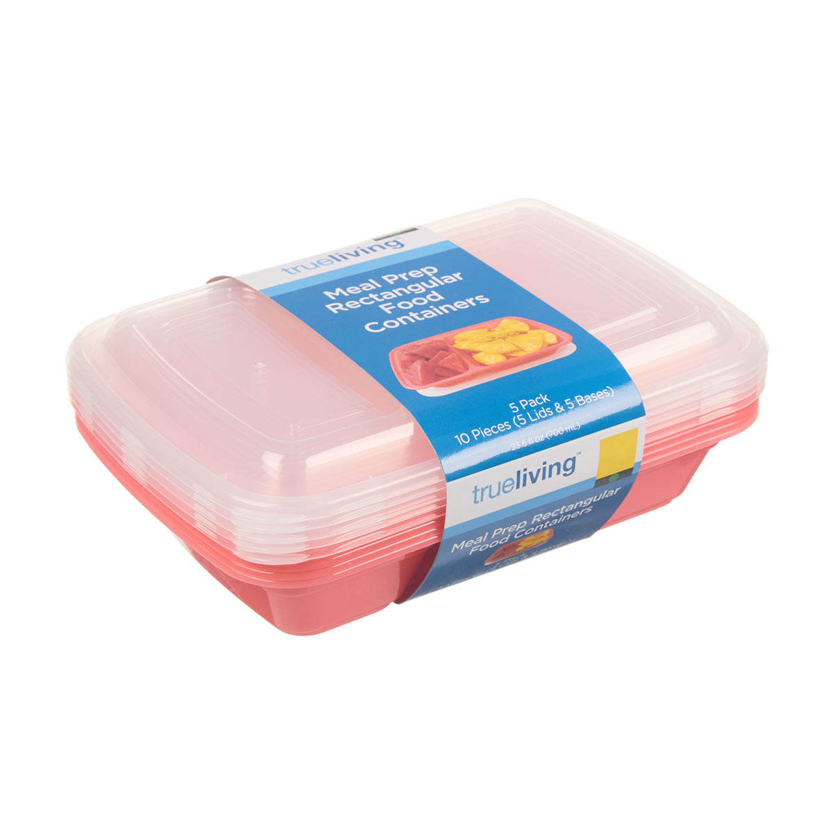 - 5-pack meal prep set includes 5 containers and 5 matching lids