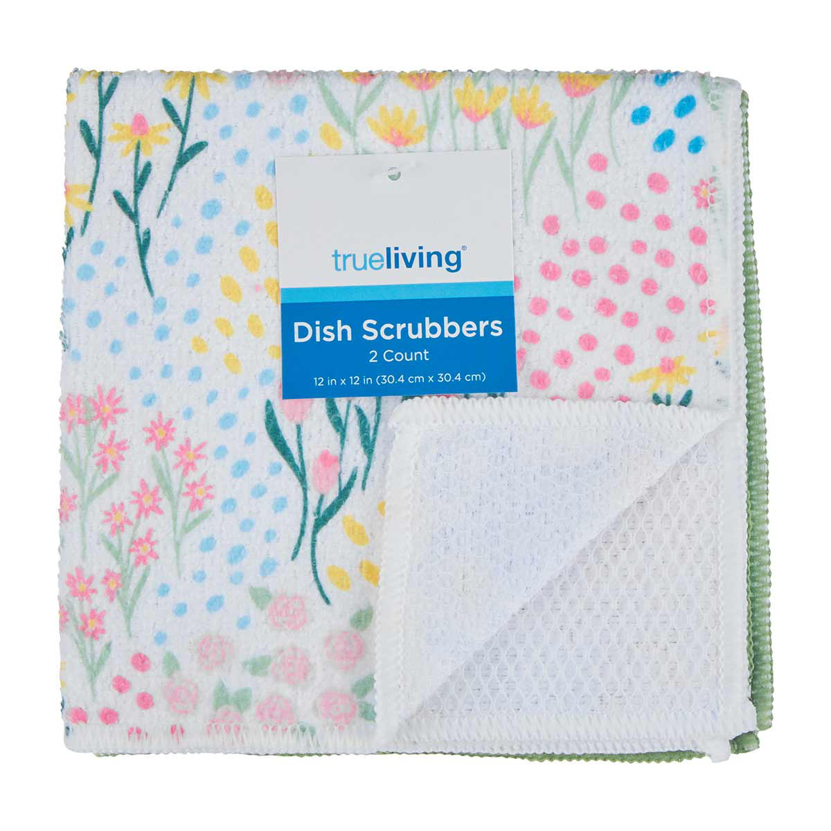 True Living Printed Square Dish Scrubbers, 2 ct, Assorted
