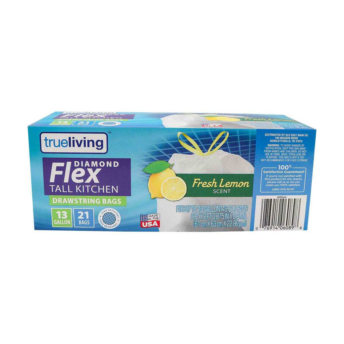 TrueLiving Diamond Flex Tall Kitchen Drawstring Trash Bags, Fresh Lemon Scent, 13 gal - 21 ct