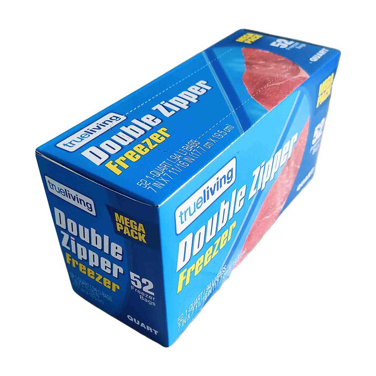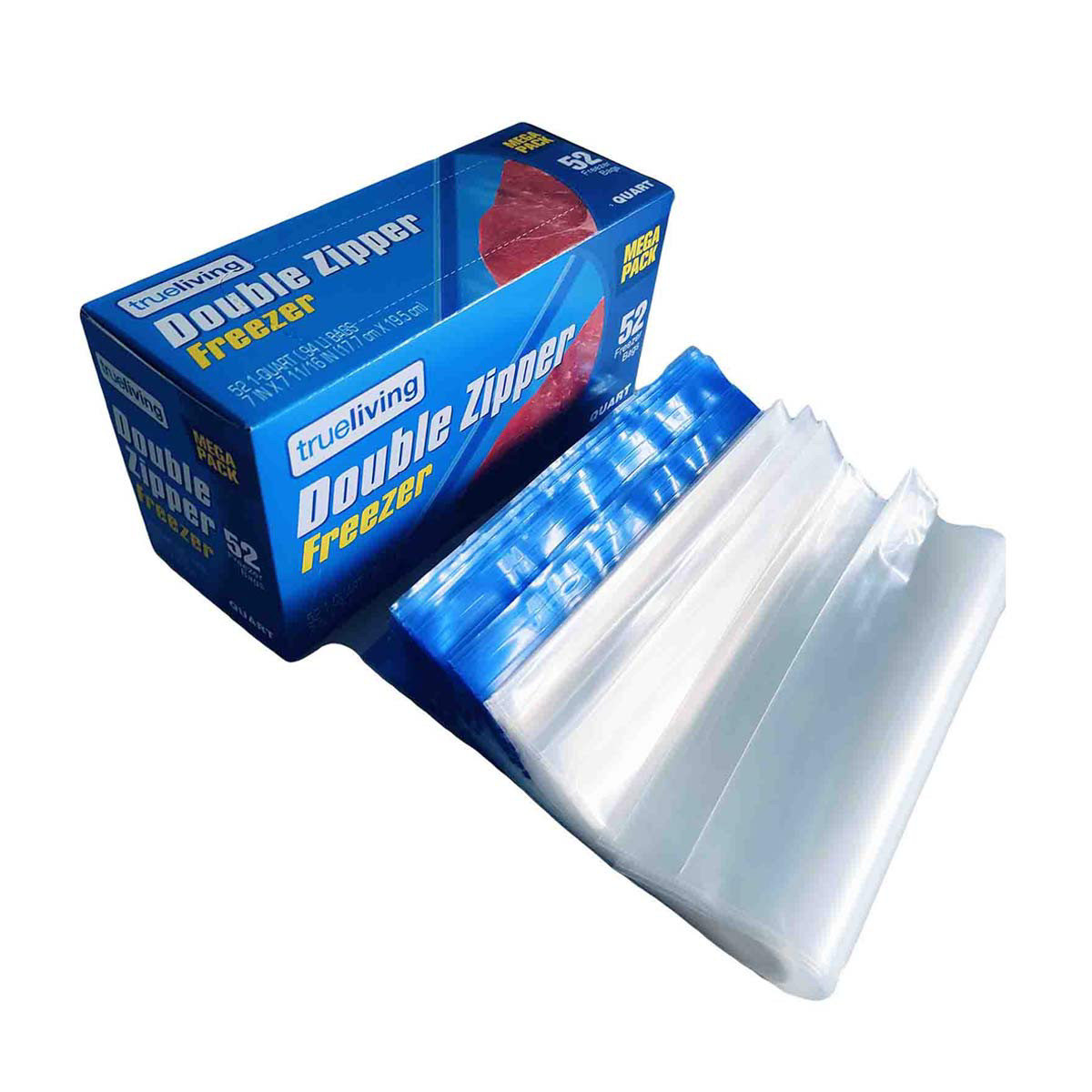 TrueLiving Double Zipper Freezer Bags, Quart Size, 52 ct