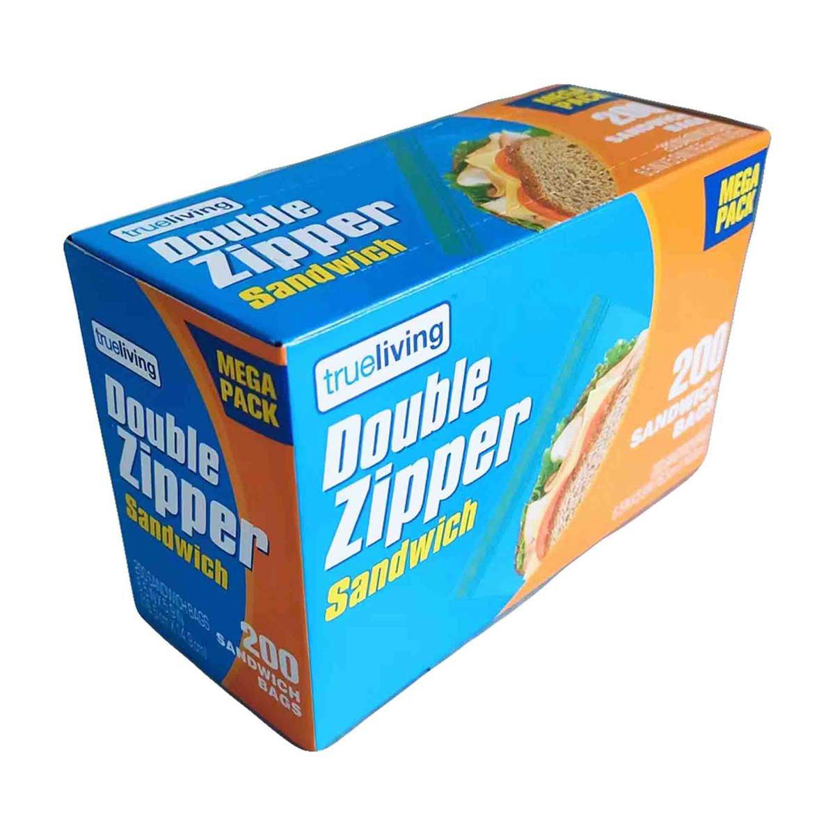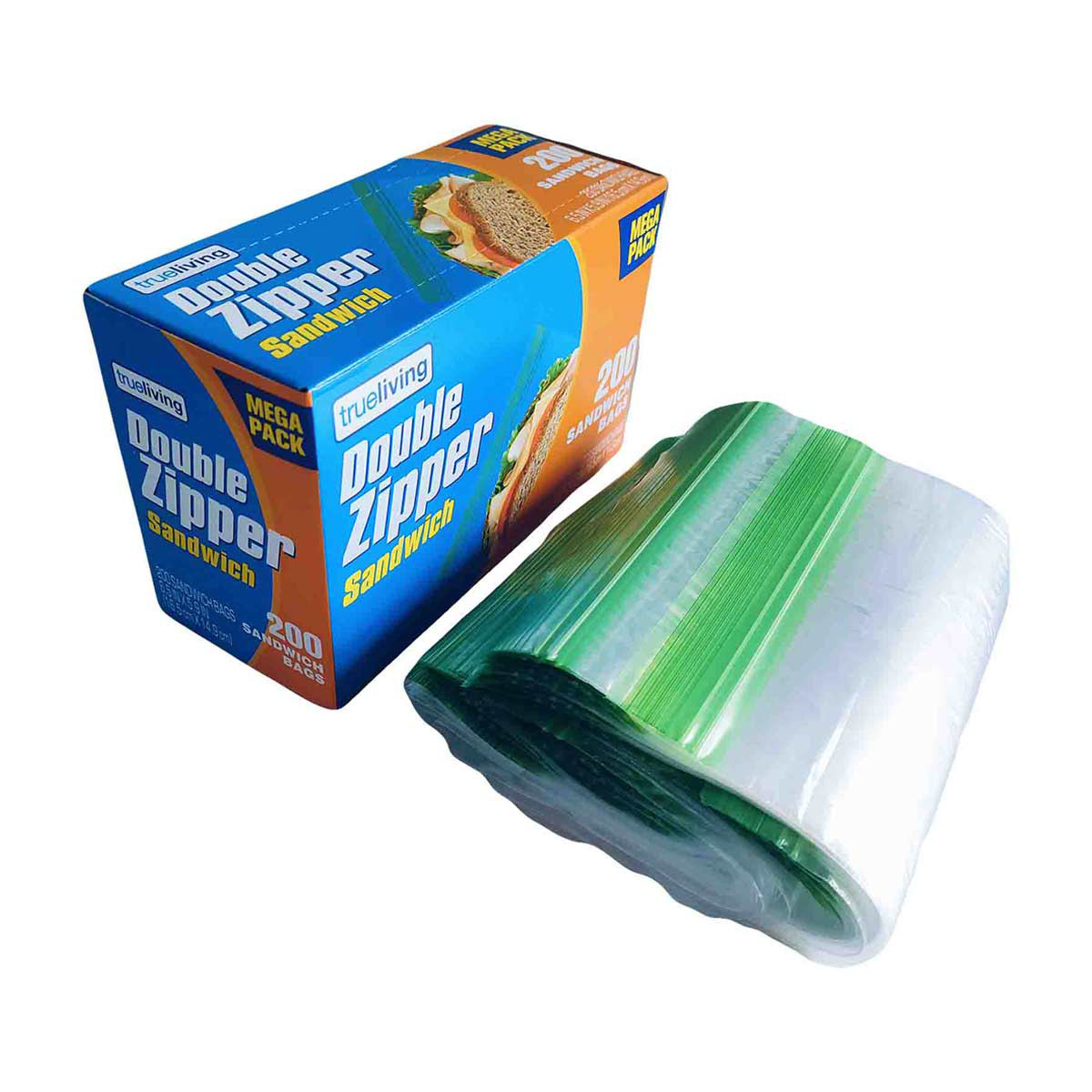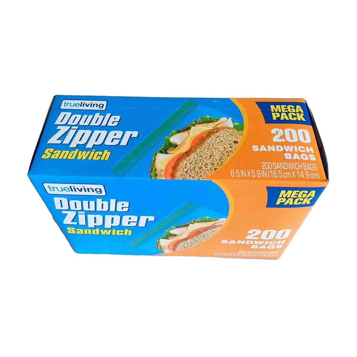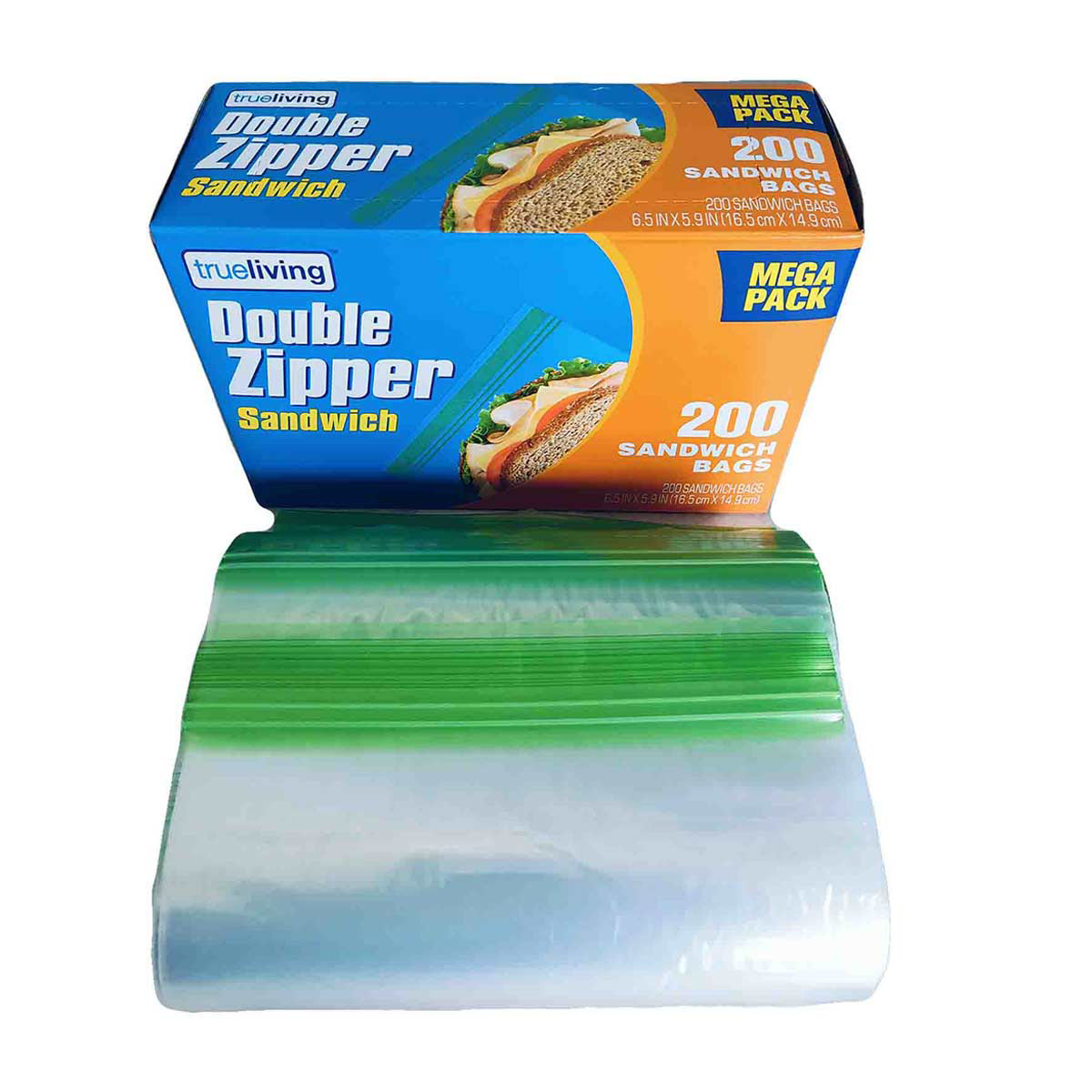 TrueLiving Double Zipper Sandwich Bags, 6.5 in x 5.9 in, 200 ct