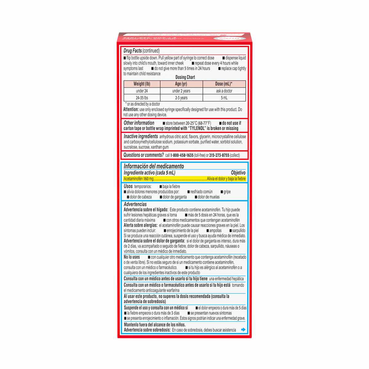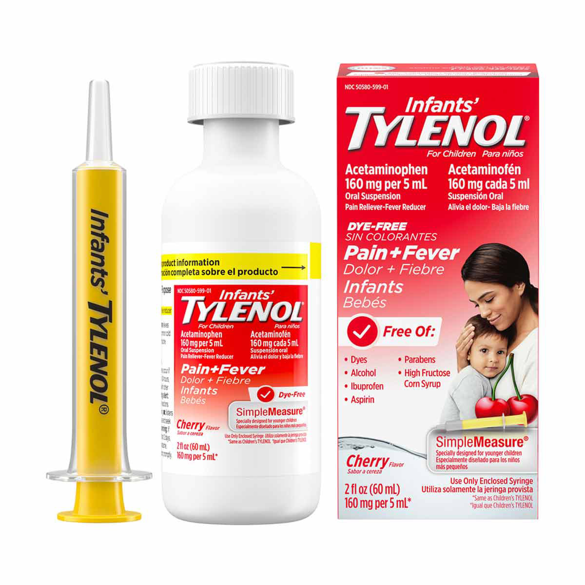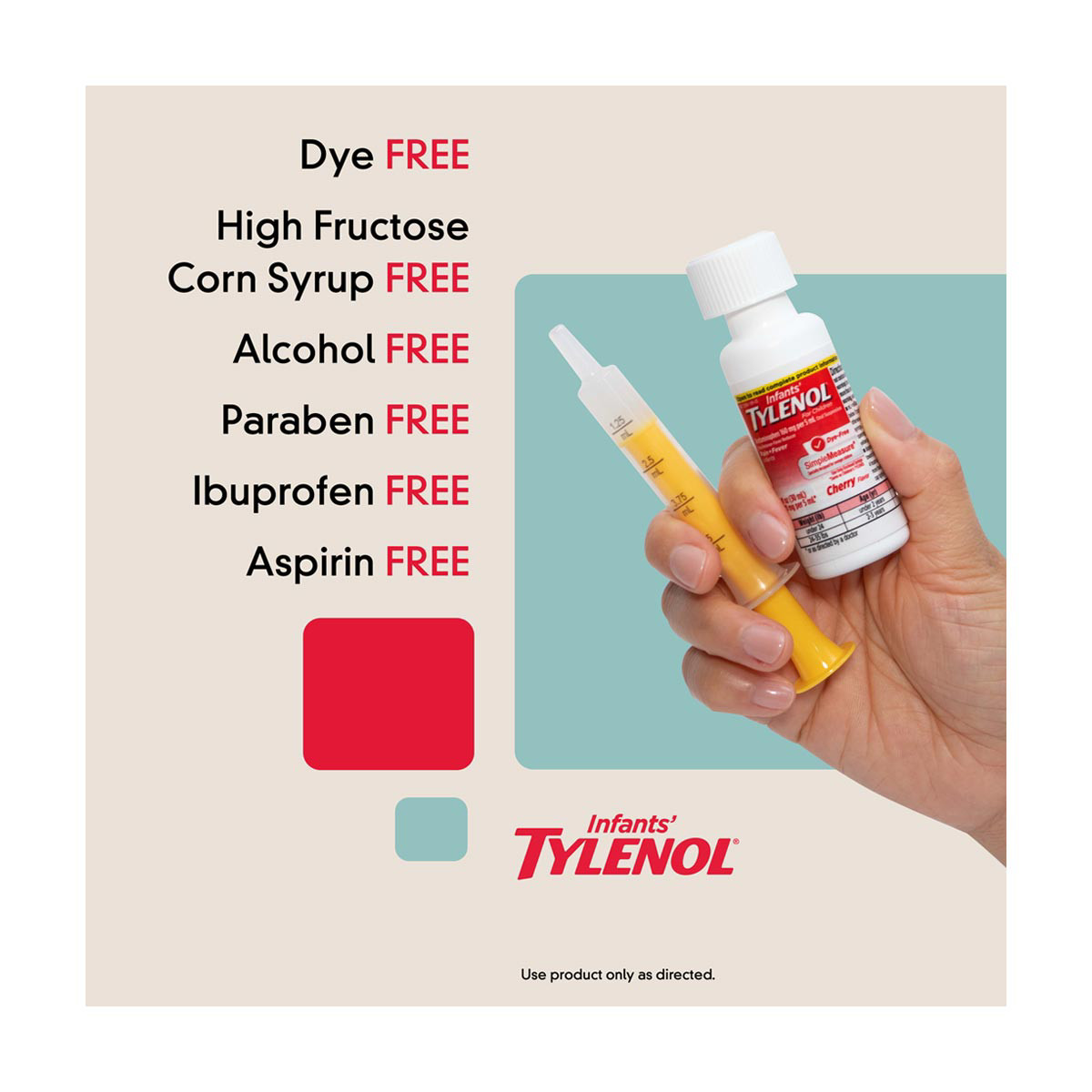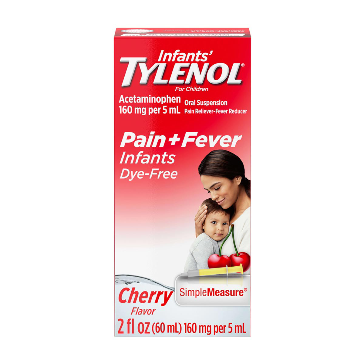 • Tylenol Infants' Oral Suspension, Dye-Free Cherry Flavored Liquid Medicine, 2 fl oz