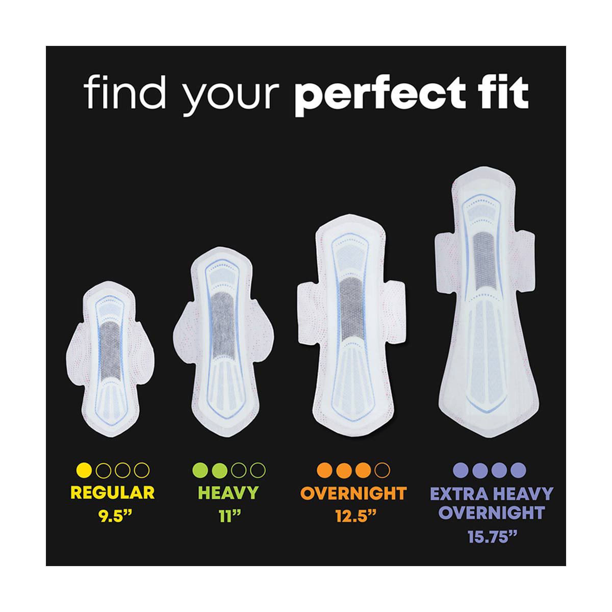 - Fits Your Curves: Our pads with wings fit snug to your body’s curves to help eliminate gaps and prevent leaks. No Harsh Ingredients: These pads for women come pH balanced and made without fragrance, lotions, pesticides, parabens, elemental chlorine and natural rubber latex