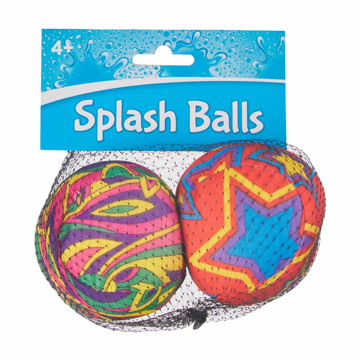 - - Set of 2 water splash balls in assorted designs- Quick-dry fabric for easy maintenance and non-stop fun- Bright, colorful patterns that are easy to see in the water- Perfect size for all ages to catch and throw- Encourages active play and helps improve coordination- Safe and soft for enjoyable play- Mesh netting included for convenient storage and portability- Ideal for pool, beach, and backyard water activities