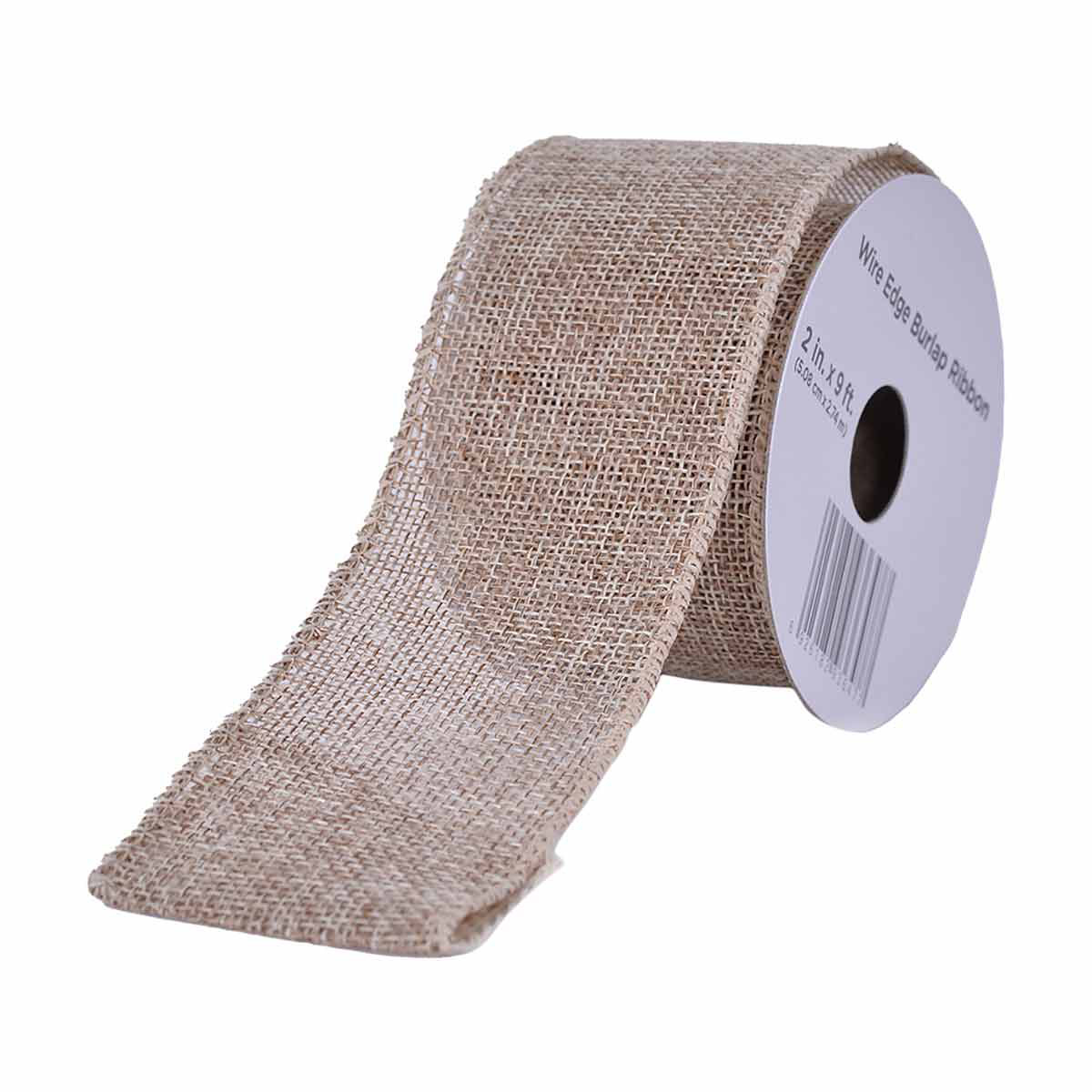 Wire Edge Burlap Ribbon - 2 in x 9 ft, Assorted