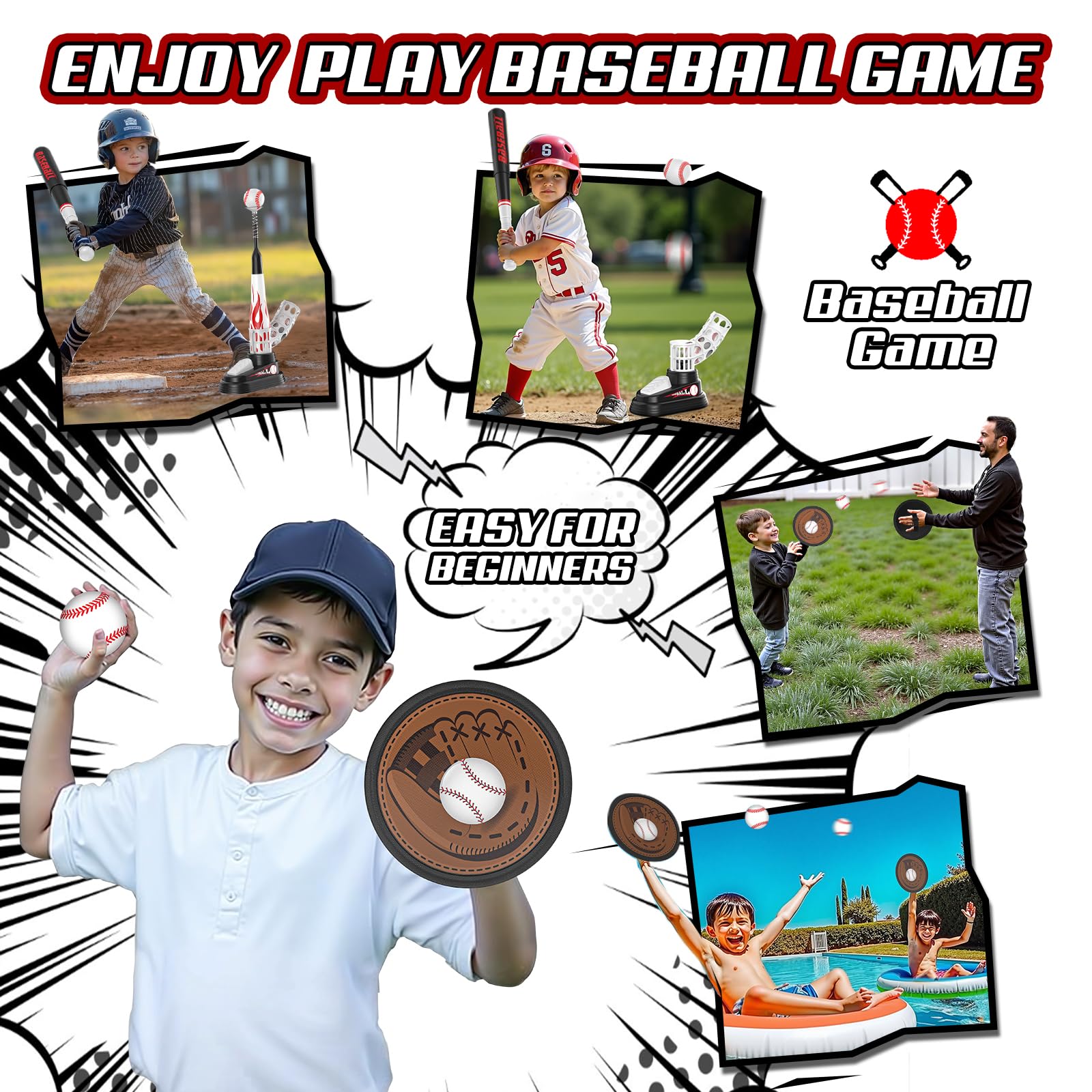 - Richer Kids Gameplay: Unlike other t ball sets for kids 3-5 that can only practice batting, our kids outdoor toy come with 2 sticky paddles resemble baseball gloves. Can enjoy endless fun with this classic 90s toss and catch game, perfect for all the needs of baseball beginners and add more fun