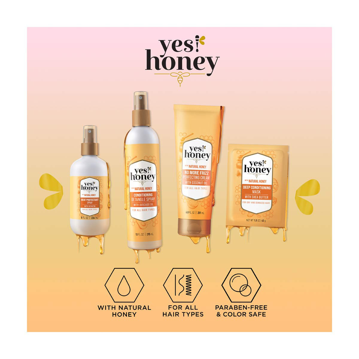 - DEEP CONDITIONING MASK: Yes! Honey Deep Conditioning Mask, 1.5 oz is our power dose of hydration for instant reinvigorated hair. The creamy formula deeply nourishes hair, fortifying cuticles to visibly repair damage and reduce breakage up to 95%.