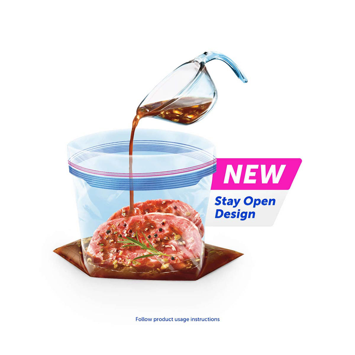- Introducing Ziploc® brand Freezer Bags with New Stay Open Design – they stay open when you want them to, making them really easy to fill, almost like having an extra pair of hands in the kitchen to help you out