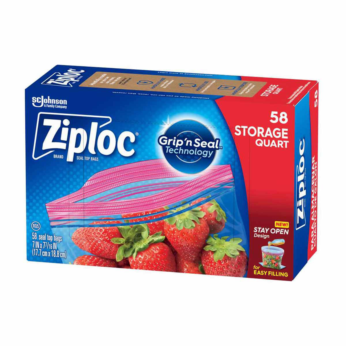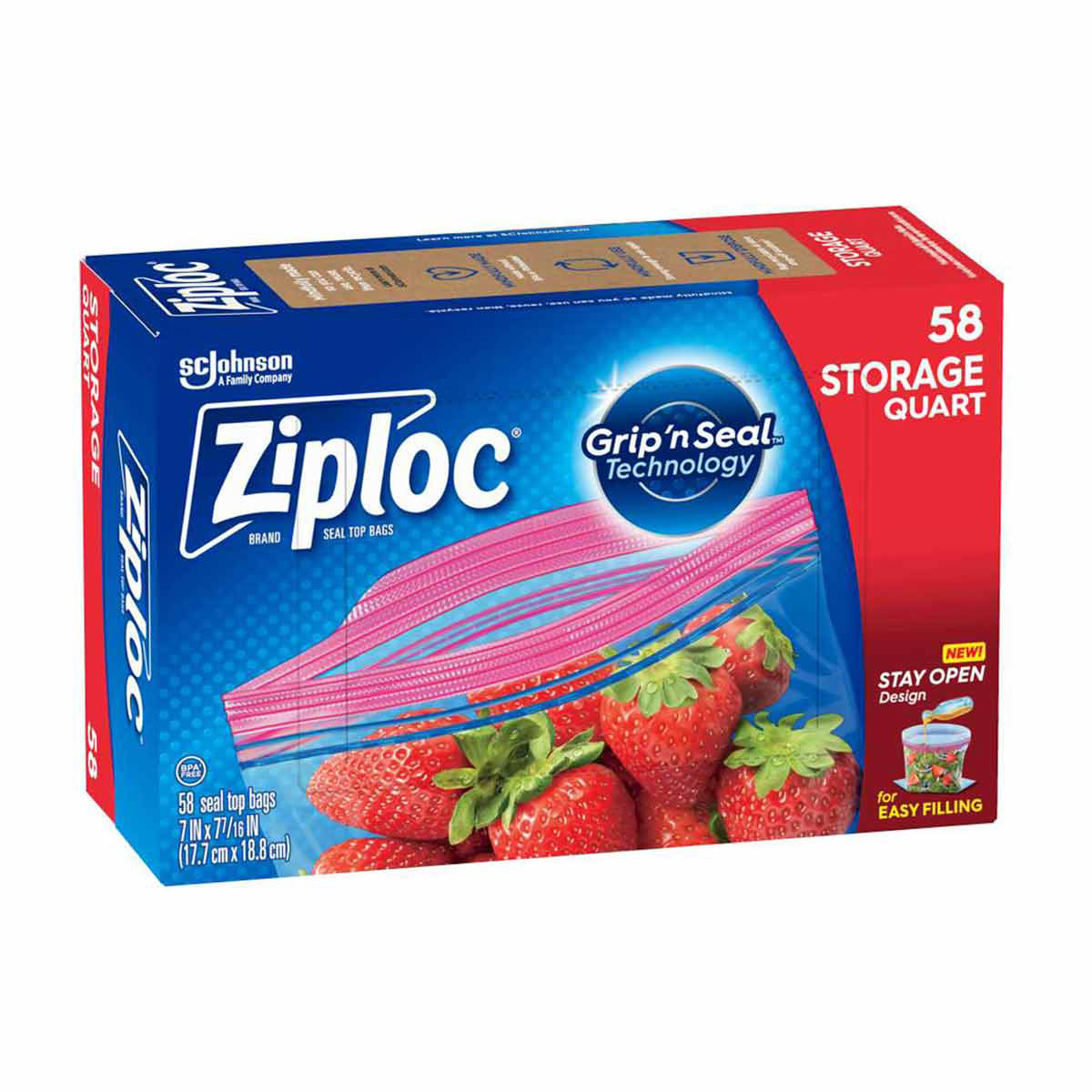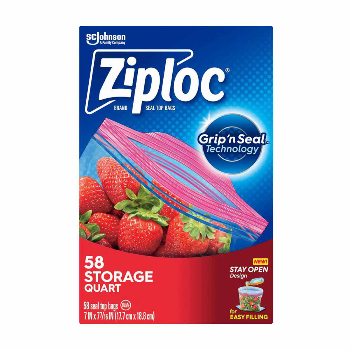 Ziploc® Brand Storage Bags with New Stay Open Design, Quart, 58 ct