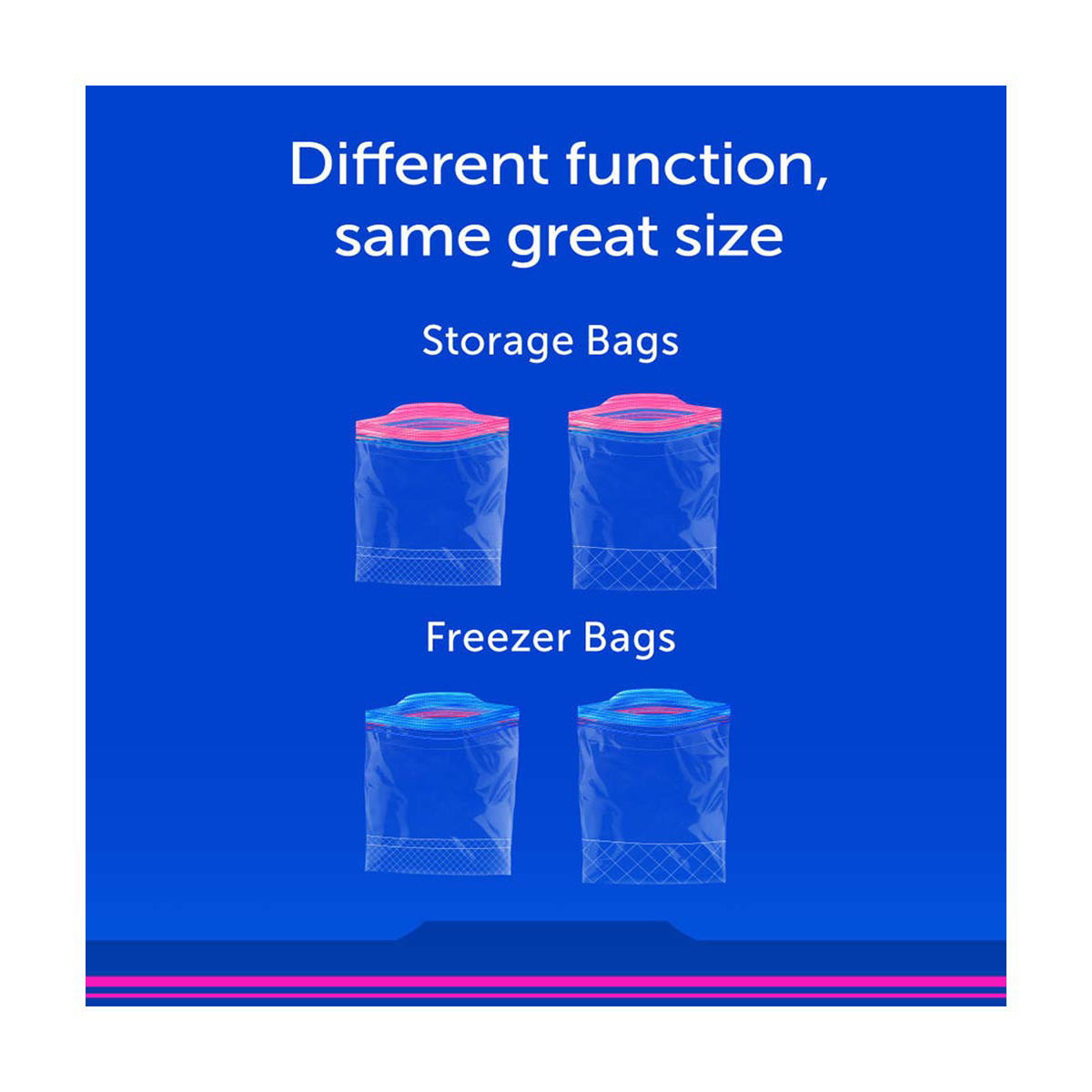 • Measuring 7" by 7 7/16", these Ziploc® brand Storage Bags are the ideal size for storing meals and leftovers, as well as for separating ingredients and keeping them handy for food prep