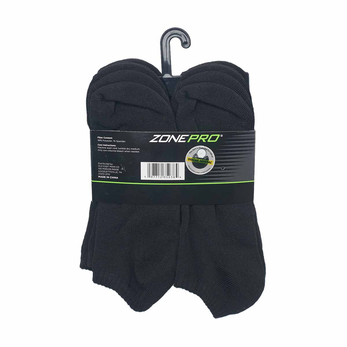 Zone Pro Men's Half Cushion No Show Socks, Shoe Size 6-12, Black, 6 pk
